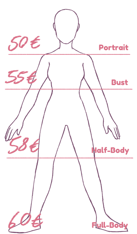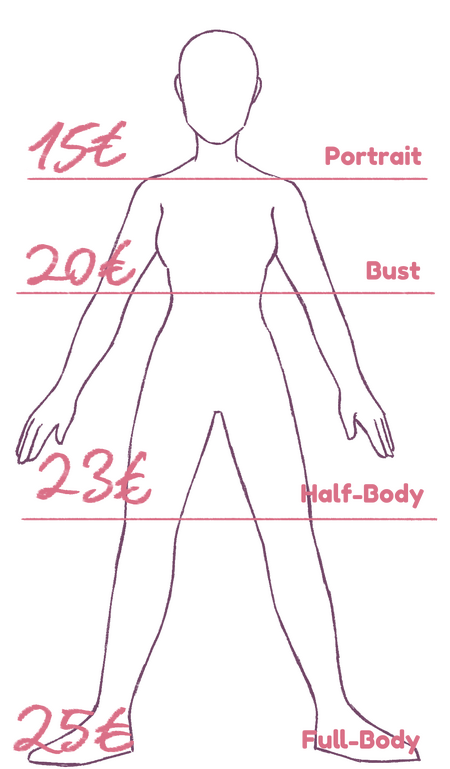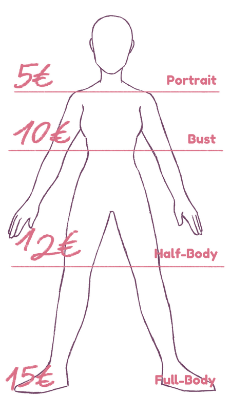 The comission types below are exclusively intended for private use. If you want a comission for commercial purposes or your specific requests aren't listed, kindly reach out to me privately. I'm sure I can help you!